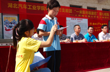 7月10日上午,湖北汽車工業(yè)學(xué)院“V益·青竹”暑期愛心支教團(tuán)的大學(xué)生們在蔣家堰鎮(zhèn)中原小學(xué)舉行愛心捐贈活動。湖北汽車工業(yè)學(xué)院副院長閔祖?zhèn)魍尽⒖h教育局副局長周躍忠同志以及相關(guān)領(lǐng)導(dǎo)都趕來支持。