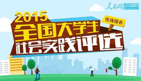為勉勵(lì)廣大青年認(rèn)真學(xué)習(xí)習(xí)近平總書(shū)記關(guān)于弘揚(yáng)真善美、傳播正能量的講話精神,引導(dǎo)大學(xué)生積極參與社會(huì)實(shí)踐,在志愿服務(wù)過(guò)程中得到鍛煉、獲得成長(zhǎng),人民網(wǎng)將舉辦“‘強(qiáng)國(guó)杯’2015全國(guó)大學(xué)生社會(huì)實(shí)踐評(píng)選”活動(dòng);顒(dòng)通過(guò)展示和評(píng)選的過(guò)程,講述社會(huì)實(shí)踐故事,宣傳優(yōu)秀團(tuán)隊(duì)。現(xiàn)將有關(guān)事宜通知如下: