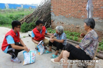 高校志愿團(tuán)隊(duì)不僅幫助留守兒童健康成長(zhǎng),也幫助孤殘老人重新燃起對(duì)生活的美好希望。青島農(nóng)業(yè)大學(xué)筑愛圓夢(mèng)服務(wù)團(tuán)和河南科技大學(xué)留守老人關(guān)愛團(tuán)同時(shí)都在關(guān)注農(nóng)村孤殘老人的生活,老人們十分需要關(guān)愛和溫暖。志愿者們深入老人家中走訪談心,耐心地為老人答疑解惑、做家務(wù),還為留守老人們送去實(shí)用的生活用品,叮囑他們注意身體。在力所能及幫老人做些事情的同時(shí),同學(xué)們也在不斷呼吁更多的社會(huì)愛心人士去關(guān)注他們、幫助他們。