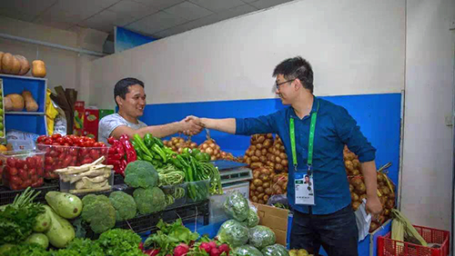 分發(fā)完盒飯,劉會彬說一會要去菜市場采購一次食材,邀請我們一同前往,小編當然欣然應(yīng)邀。途中,又開心地交流起來。
