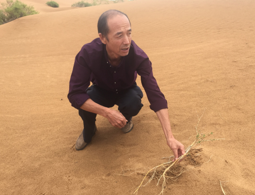 唐希明在治沙現(xiàn)場(chǎng)