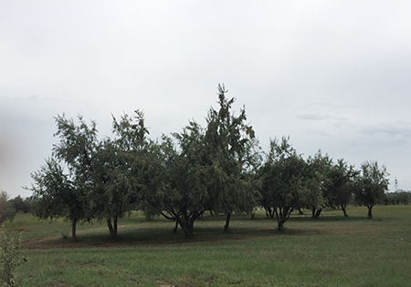 沙棗樹看上去不繁茂、樹干矮、粗皮,卻可以抗御著烈風(fēng),阻擋沙漠的前移,在缺水、多風(fēng)沙、鹽堿嚴(yán)重、土壤貧瘠的環(huán)境里頑強(qiáng)地活下來,撐起沙海里一片綠蔭,從不向瘋狂的風(fēng)沙低頭。