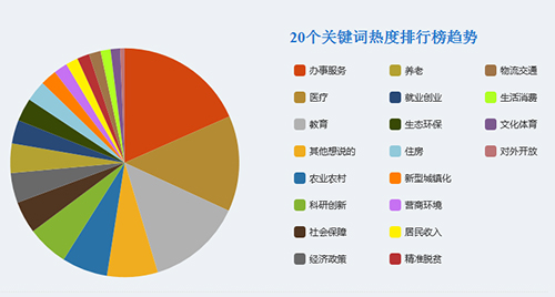圍繞群眾關(guān)切,本次征集活動共設(shè)置了20類話題。辦事服務(wù)、醫(yī)療、教育是網(wǎng)友關(guān)注的重點,位居話題榜前三位。科研創(chuàng)新、農(nóng)業(yè)農(nóng)村、社會保障、養(yǎng)老、經(jīng)濟政策、生態(tài)環(huán)保、住房分列四到十位。