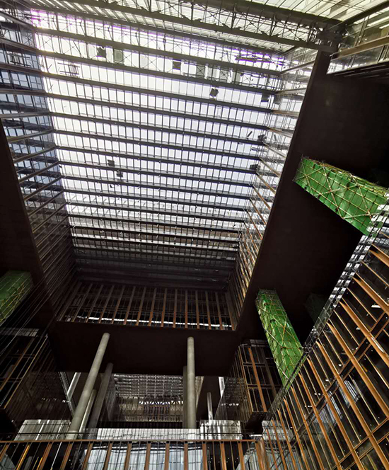 “傳統(tǒng)的腳手架是從下往上搭建,但經(jīng)過我們亞投行項(xiàng)目青年員工的創(chuàng)新,改為從上往下搭建,改變了架體的結(jié)構(gòu)形式,將本來需要60米高的滿堂架改為3米高的吊掛架,成功解決了首層樓板對(duì)架體承載力不足難題! 31歲的項(xiàng)目總工程師劉瑞軍每每談到創(chuàng)新使用吊掛腳手架裝修大跨度采光頂幕墻時(shí),都神情飛揚(yáng),同時(shí)感慨萬千。