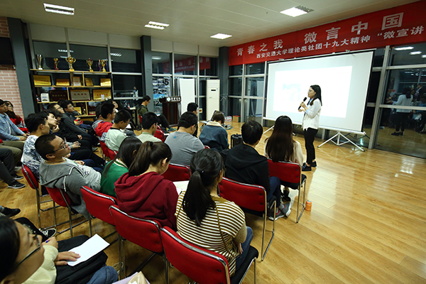 錄制前的電話初采時,聽聞李婧竟是比記者僅大一歲的博士生,我訝異不止。清脆活潑的聲音,大方清晰的談吐,正是一場場宣講留在她身上的印記,也帶著遠遠超出她這個年紀的穩(wěn)重和堅定。從2017年作為第一批宣講人加入西安交通大學學生微宣講團開始,從山村小學到重點高校,從工廠車間到領軍企業(yè),從邊防軍營到繁華都市,李婧的足跡遍布22個。ㄊ、自治區(qū)),參與宣講工作。