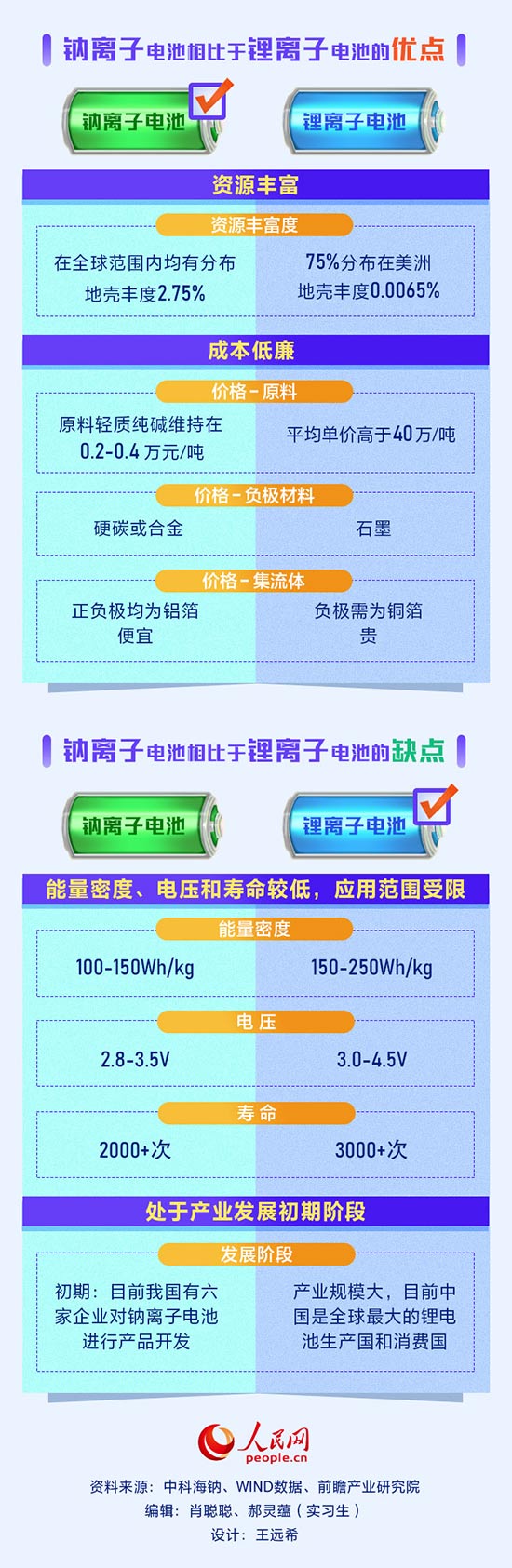 “鈉離子電池是主要靠鈉離子在正極和負(fù)極之間移動來工作,與鋰離子電池的工作原理和結(jié)構(gòu)相似,理論上相比鋰離子電池可能有成本優(yōu)勢,且可能擁有更好的倍率、低溫和安全性,但是,最主要的是資源儲量優(yōu)勢!睆B門大學(xué)中國能源政策研究院院長林伯強表示,目前,鈉離子電池的發(fā)展正在起步階段,在相關(guān)政策的支持下,有望在產(chǎn)業(yè)化進程上加速發(fā)展。