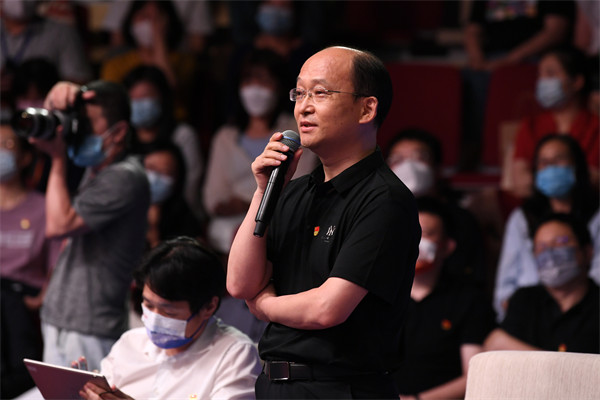 特邀嘉賓中央和國家機(jī)關(guān)工委基層組織建設(shè)指導(dǎo)部一處處長(zhǎng)黃文明向選手提問