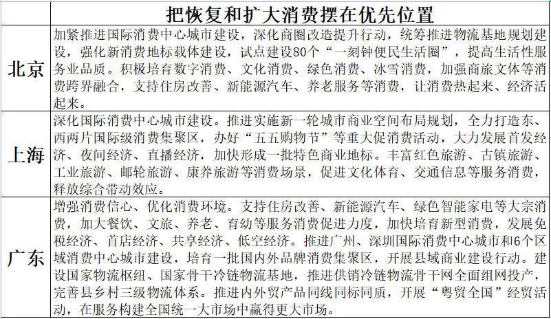針對近期中央經(jīng)濟工作會議提出的“要把恢復(fù)和擴大消費擺在優(yōu)先位置”,地方政府將擴大內(nèi)需尤其是促進消費恢復(fù)作為2023年政策的重點。