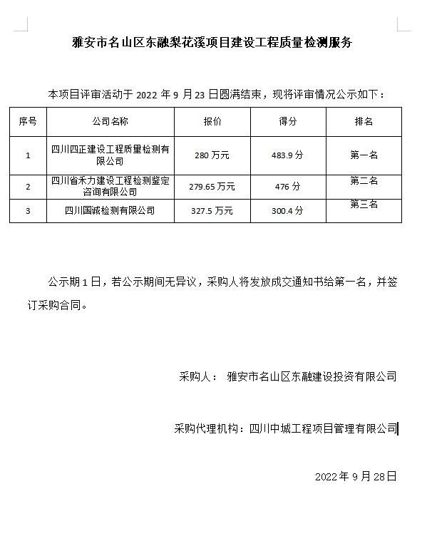 雅安市名山區(qū)綜合農(nóng)貿中心新建項目勞務+機械采購項目招標結果公告...
