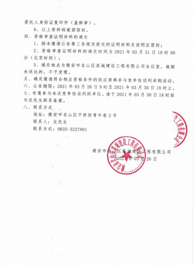 雅安市名山區(qū)茶城建設工程有限公司 關于公開招募2026年供應商入庫的公告...